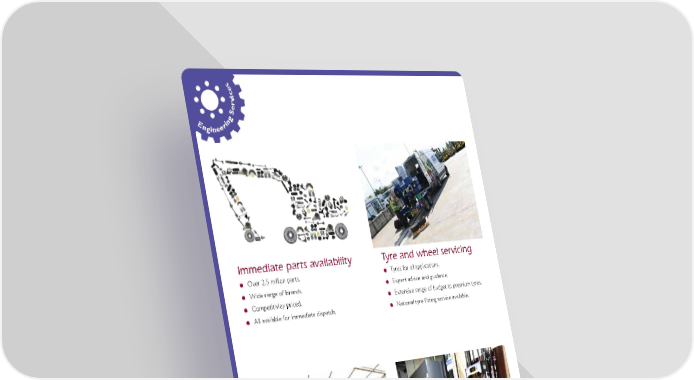 sec i rv Se g Engineerin BRIGGS Immediate parts availability Tyre and wheel servicing Over 2.5 million parts. Tyres for all applications. Wide range of brands. Expert advice and guidance. Competitivley priced. Extensive range of budget to premium tyres. All available for immediate dispatch. National tyre fitting service available. Used Equipment Training 400 units available in various makes and models. Courses available on all types of materials handling Up to 12 months warranty and LOLER Certified. equipment, mobile plant, overhead cranes and more... 90% of stock from our ex-rental fleet. All levels offered from novice to refresher and instructor level training. Choice of finance options available. All courses accredited by leading bodies. Training available at our training centres nationwide or onsite at your premises.